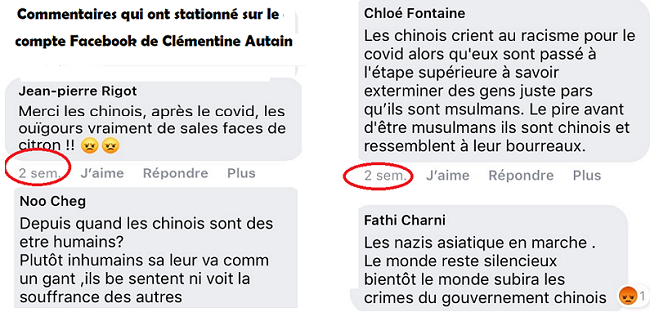 (2) J’ai protesté naguère (sans résultat) contre les insultes racistes antichnoises sur le compte Facebook de Clémentine Autain. La France est un pays où le racisme est puni, sauf dans l’entourage d’une politicienne ambitieuse qui aspire à devenir présidente de la République.