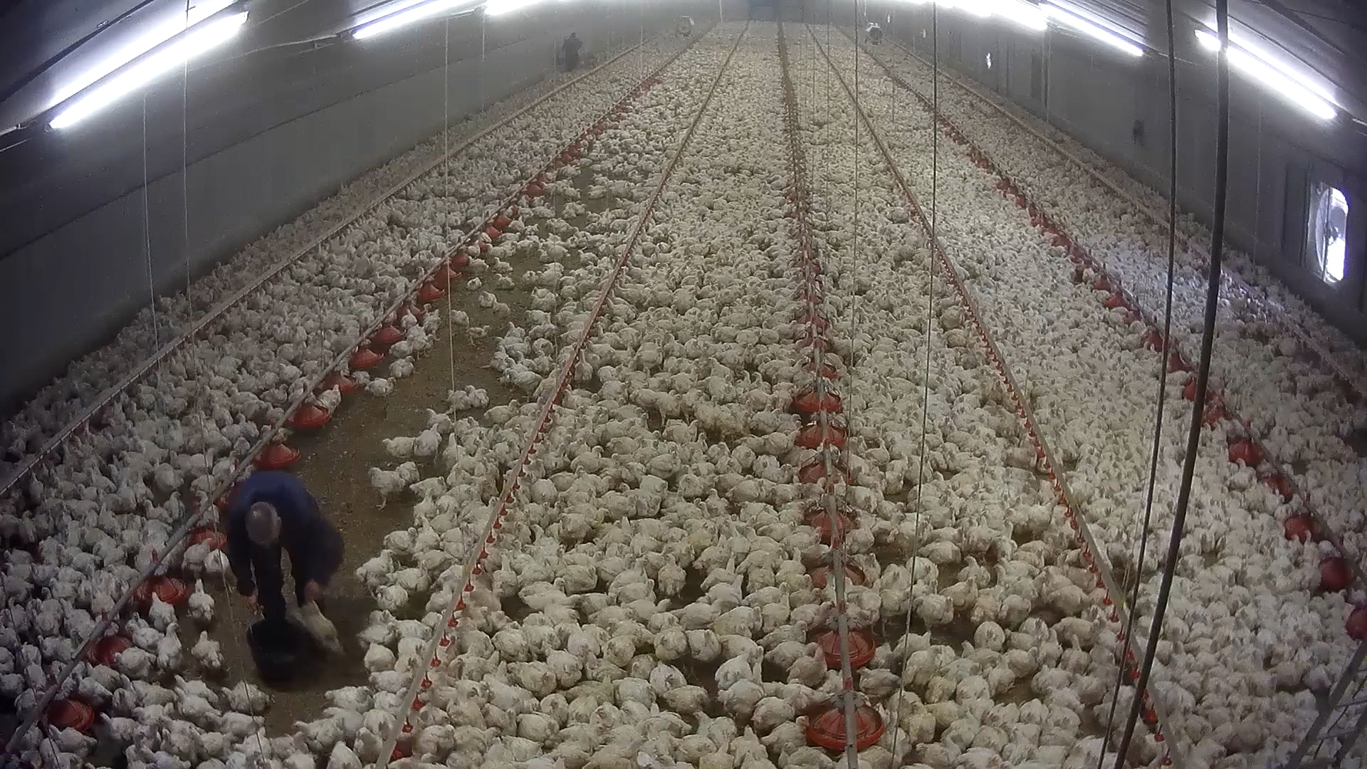 Les poulets malades agonisent de longues heures, puis meurent parmi les vivants. Passés 35 jours d’engraissement, les poulets sont ramassés à la Chicken Cat, une machine agricole qui propulse les animaux dans des cages minuscules, direction l’abattoir.