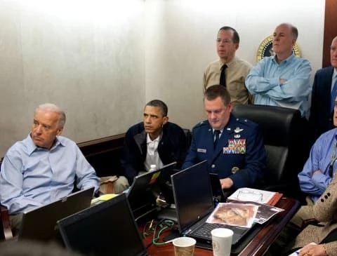 Obama et des membres de son équipe de sécurité nationale dans la Situation Room, suivant la mission qui a tué Oussama Ben Laden, le 1er mai 2011. (Pete Souza/Flux Flickr de la Maison Blanche, Wikimedia Commons, Domaine public)